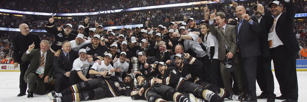 ANAHEIM, CA – JUNE 06: The Anaheim Ducks pose with the Stanley Cup after their team’s victory over the Ottawa Senators in Game Five of the Stanley Cup Finals on June 6, 2007 at Honda Center in Anaheim, California. The Ducks defeated the Senators 6-2 to win the Stanley Cup Finals 4 games to 1. (Photo by Jim McIsaac/Getty Images)